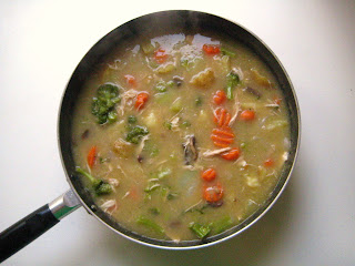Give it a good mix, and cover and simmer over low heat for a good half hour to 45 minutes at least. The longer the better, depending on how you like your vegetables cooked.