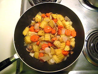 Then we add our “tasty cream stew sauce mix.” The same goes with these mixes as with the curry mixes. If you made a cream sauce yourself (or bechamel sauce, if you want to be pretentious), it wouldn’t taste the same. It would taste kinda like a chicken pot pie filling.