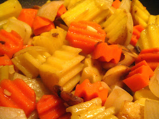 The preparation of this dish is very similar to the nikujaga recipe. In fact, it’s more or less identical except for the later stages. We begin by sweating the vegetables over medium heat with about two tablespoons of butter or oil or even non-stick spray.